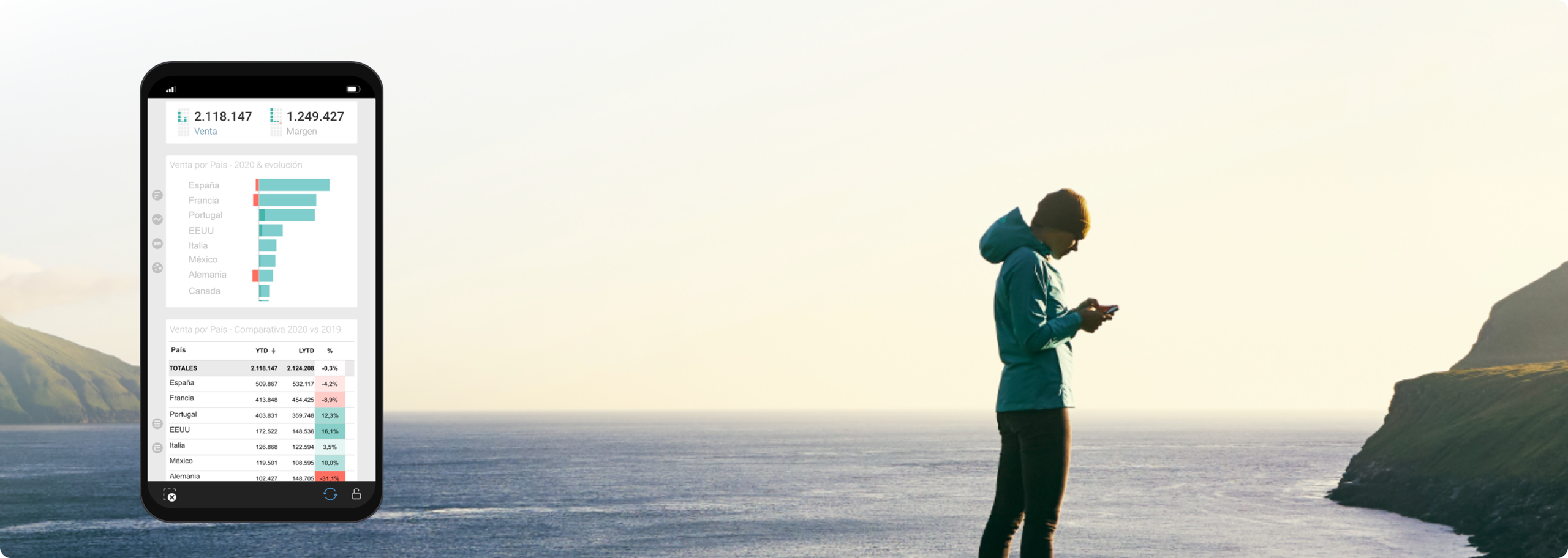 Cambia el enfoque del análisis con un clic: por país, vendedor, cliente, producto o periodo.